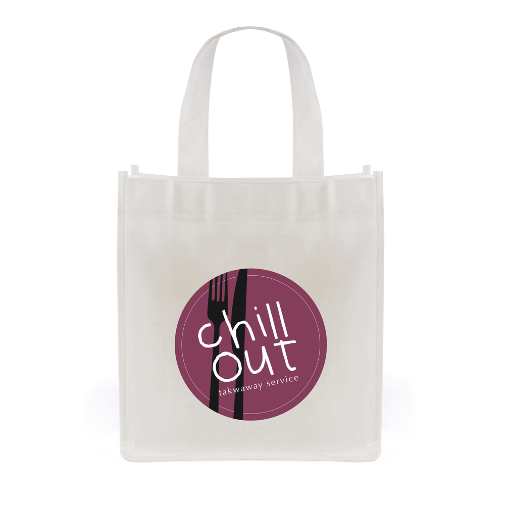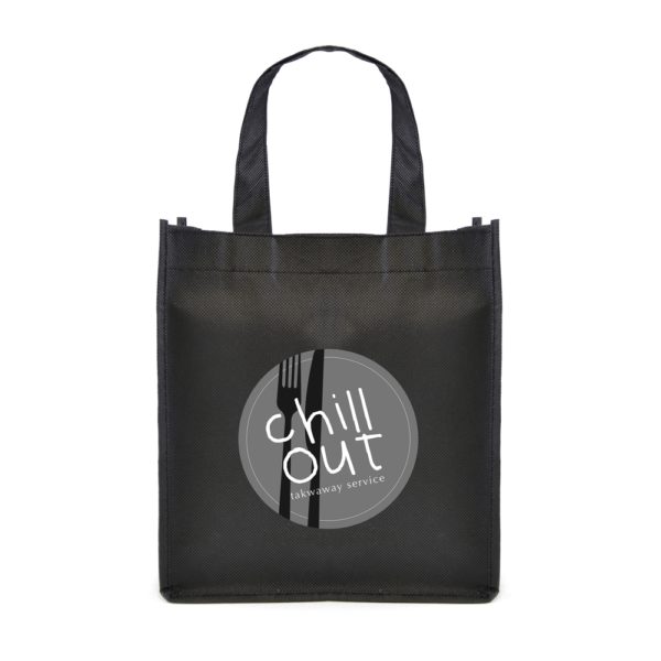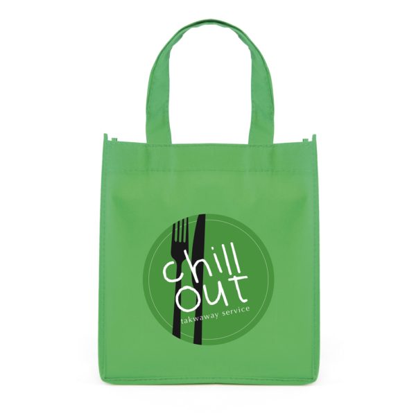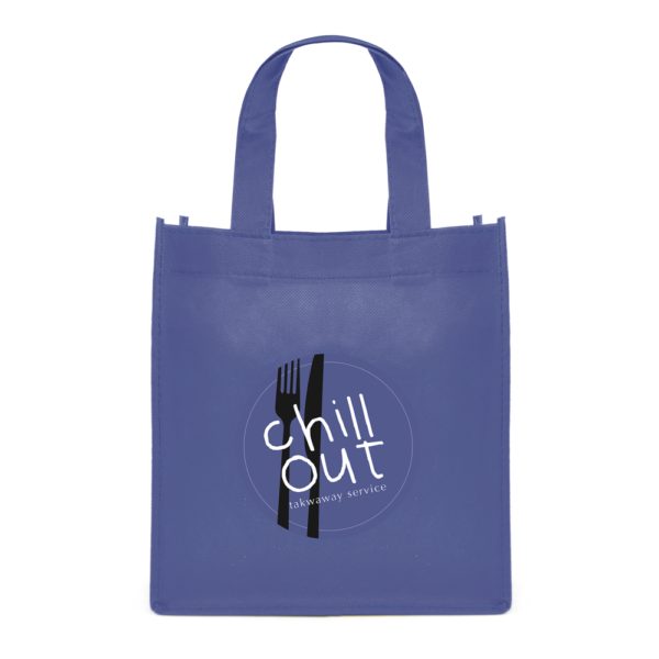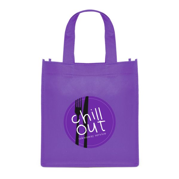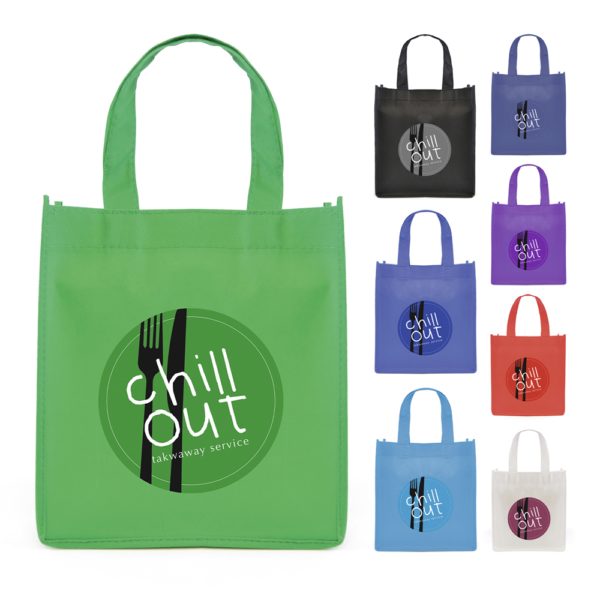 Recyclable 70gsm non woven PP mini Bag with handles and gusset. Ideal as a sandwich bag to carry your lunch in or a gift bag.