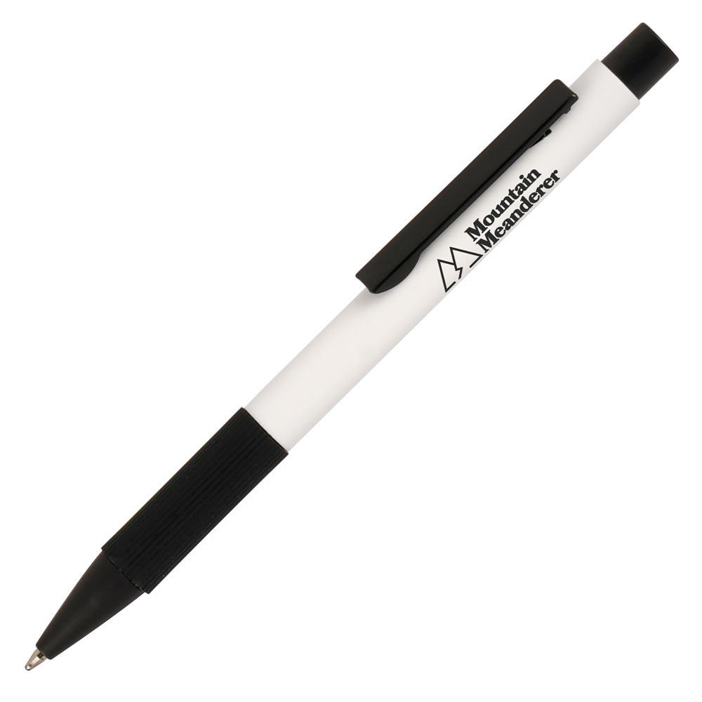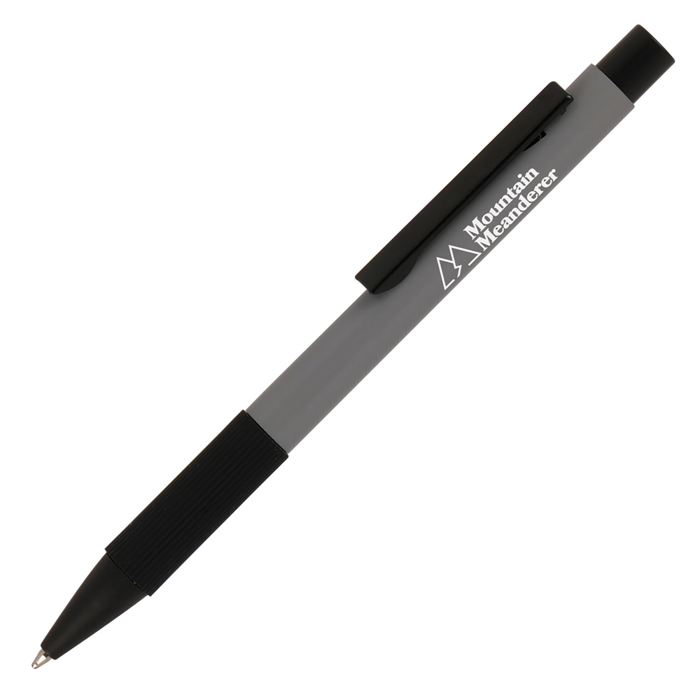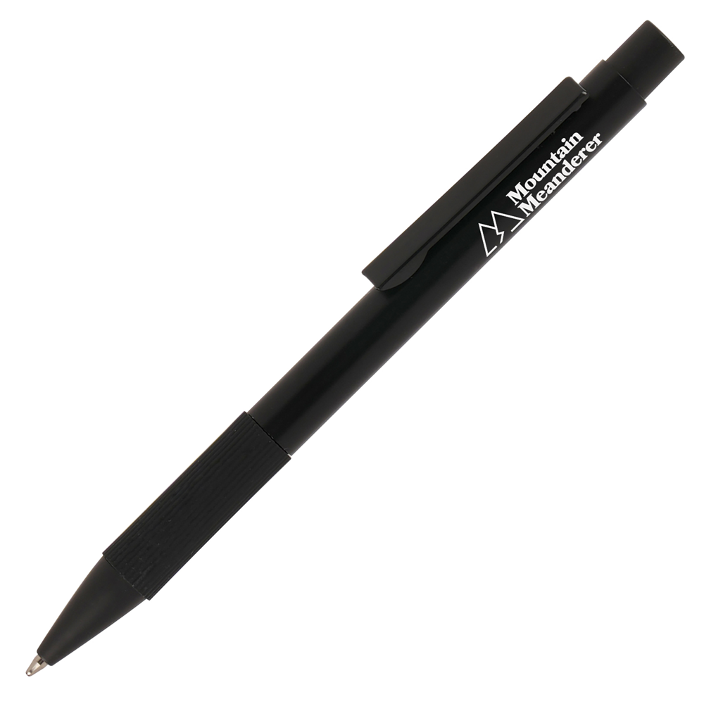 Boost your brand with the Mystic Grip Ball Pen, boasting an aluminium barrel with a metal clip and a silicone grip that enhances comfort and control while providing a non-slip experience. The black trims offer a contemporary feel. This pen is an ideal promotional item for distributing at trade shows and events, given its high-quality materials and ample space for prominently showcasing your company message. This lightweight pen is perfect for sending to clients working from home or on boarding staff. Order yours today and make a lasting impression!